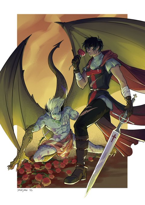 123 446 SUPER self indulgent AU inspired by a regional myth (Sant Jordi au? ) 🐉🌹 Knight was ment to slay the dragon but ended falling for them #trigun #vashwood (+) 23/04/21 03:31