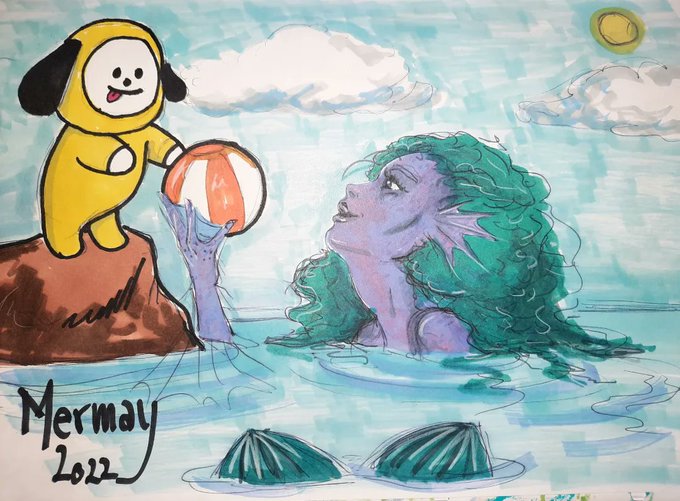 Mermay 08/05... Wuhuuu! What a fun ride. Mang and friend have so much fun. #mermay2022 #mermay #hippocampus #BT21 #bt21fanart