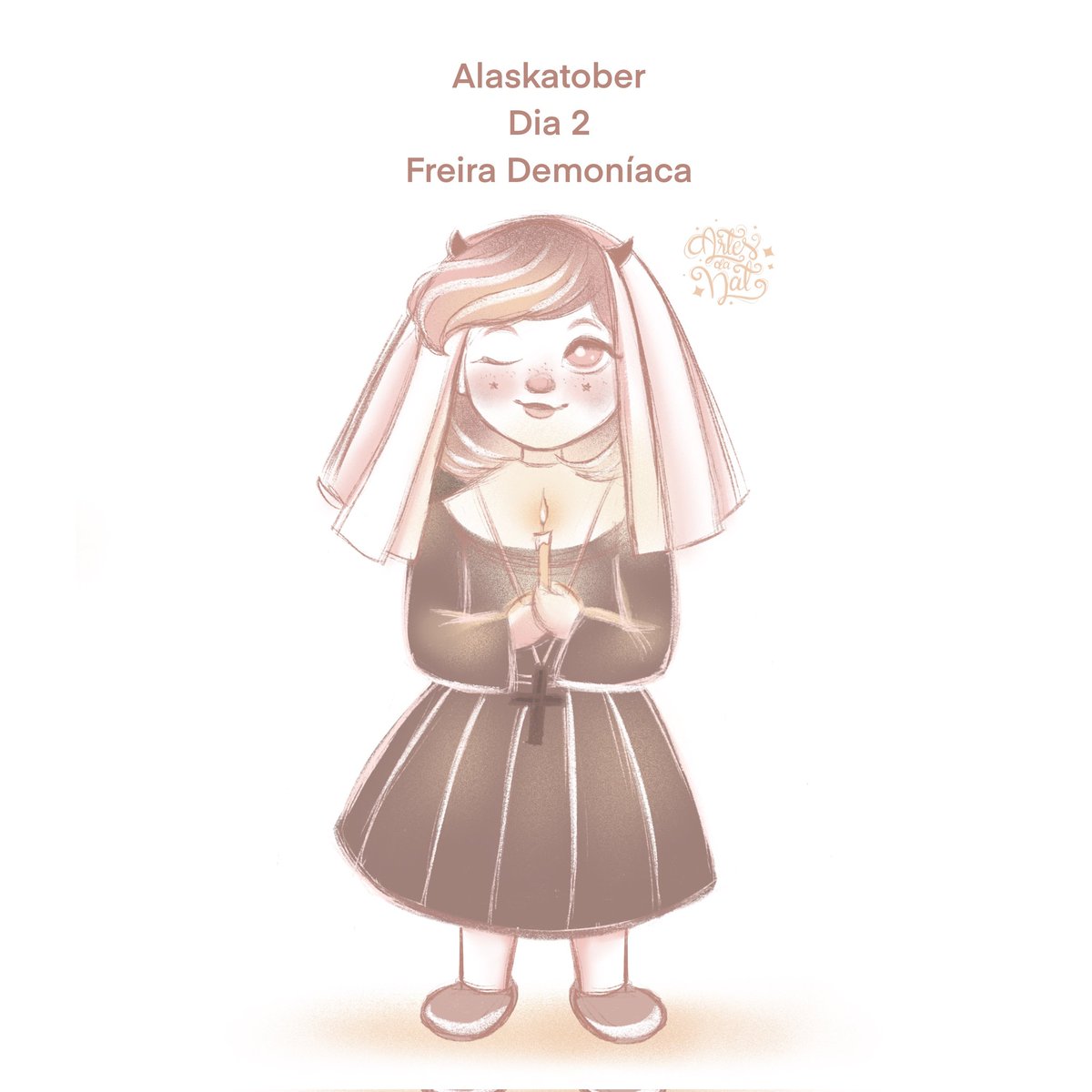 Dia 2 do Inktober com o tema "Freira Demoníaca". Tentei fazer o mais fofinha possível rs Tenho pavor de filmes de terror com criança, boneca, espírito e espelhos 😅 #inktober #inktober2021