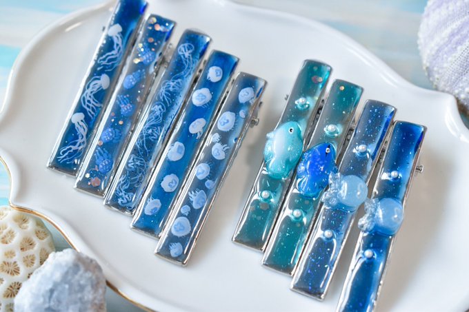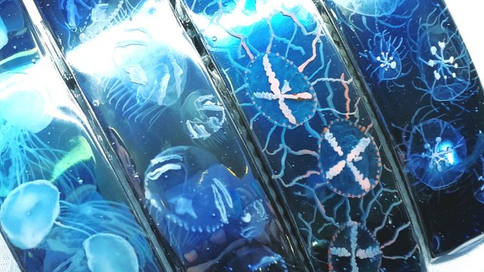 #どこかの誰かに刺さればそれで良い クラゲマニアに刺さればいいな…!! レジンでクラゲのアクセサリーを制作しています。 ちょっぴりマニアックなクラゲも その種類の特徴が分かるように気をつけながら作りました(:] 彡