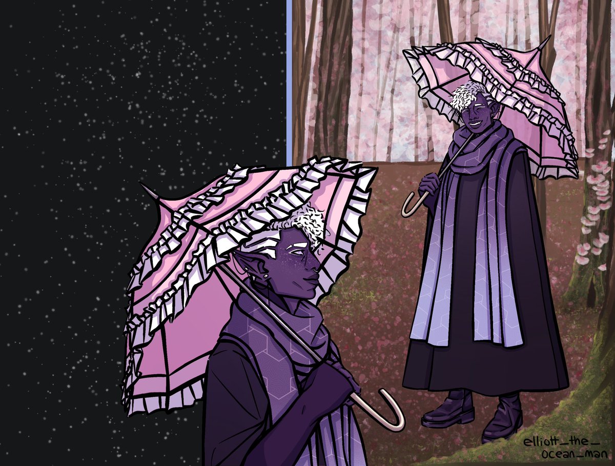 Here’s the fluffy Quay/Laerryn piece I was working on during the finale. I loved their dynamic sm and I will miss them dearly 💜💜💜 #ExUCalamity #CriticalRole #criticalrolefanart #LoquatiusSeelie #LaerrynCoramarSeelie