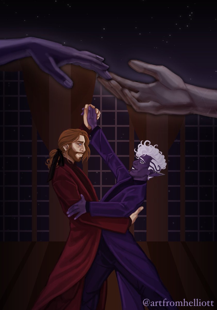I’ve experienced yet another #shadowgast renaissance and thus decided to draw them waltzing. This was my first time doing a one layer digital painting and I honestly had a blast! #criticalrolefanart #essekthelyss #calebwidogast