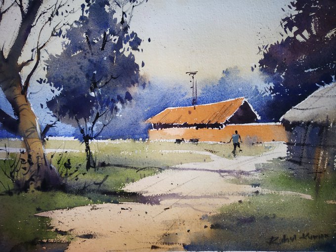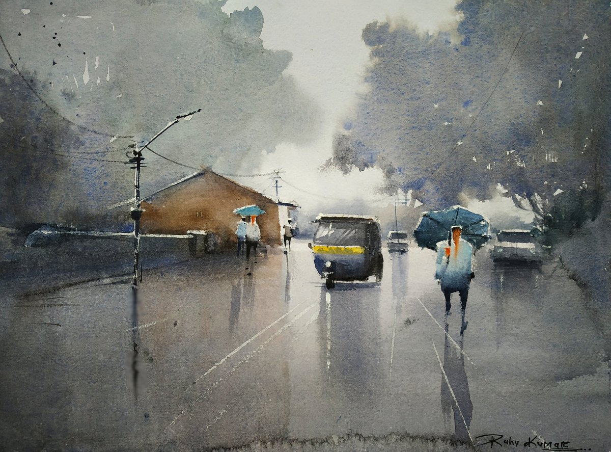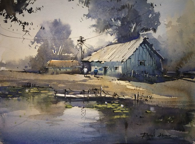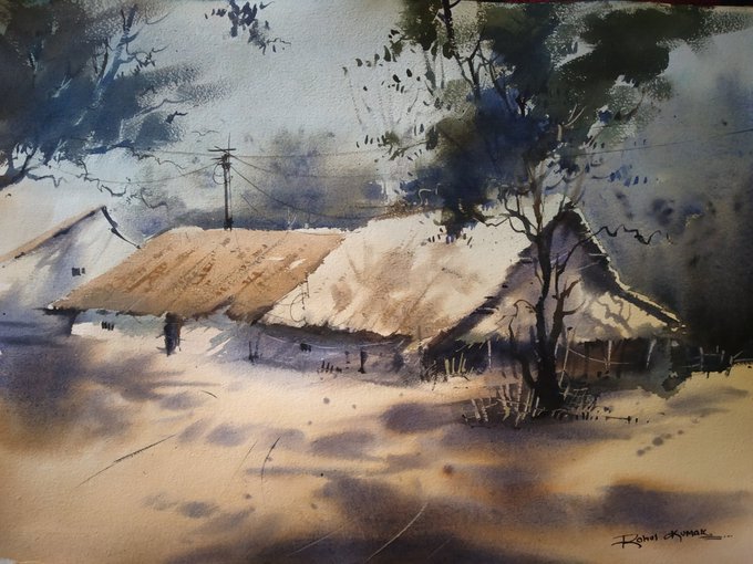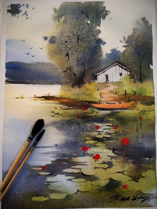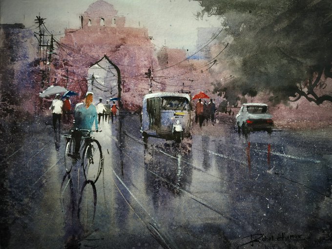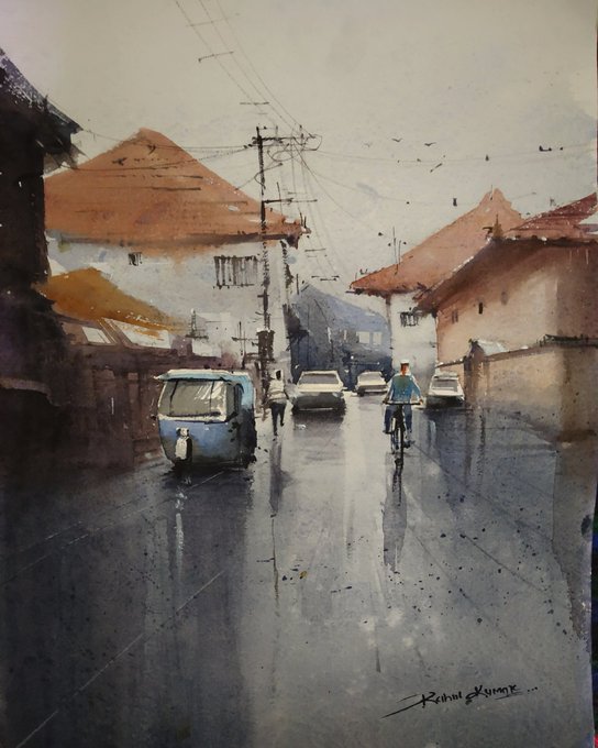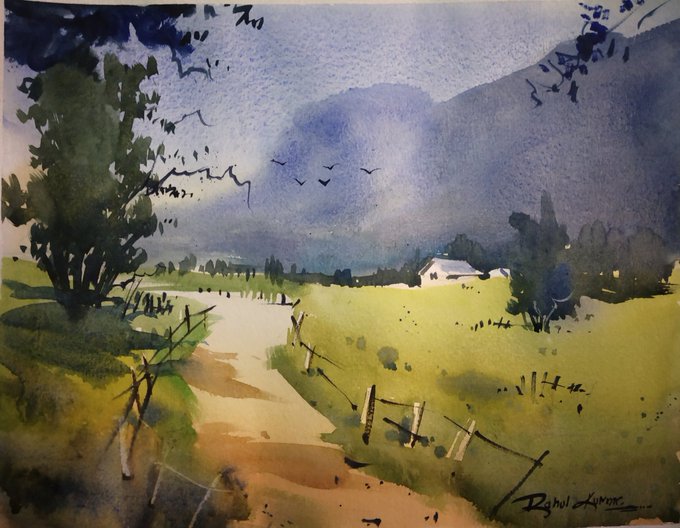 Watercolor work on paper #art #ArtistOnTwitter #Watercolor #watercolorpainting #Landscapes #rainyday
