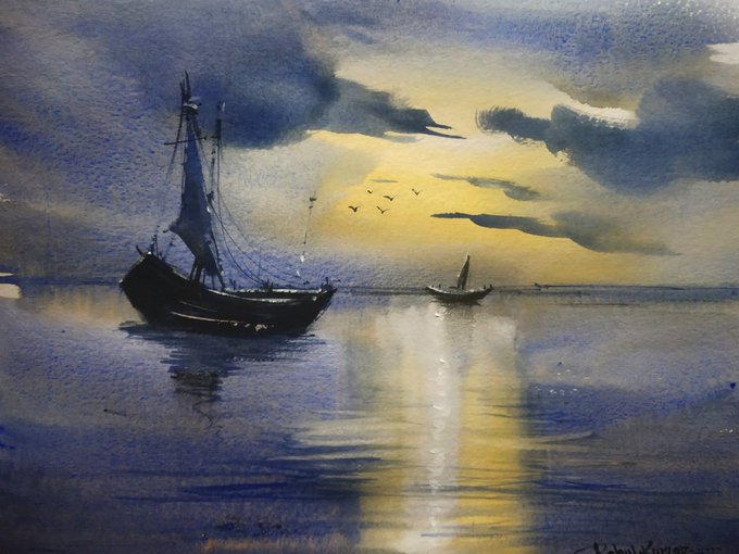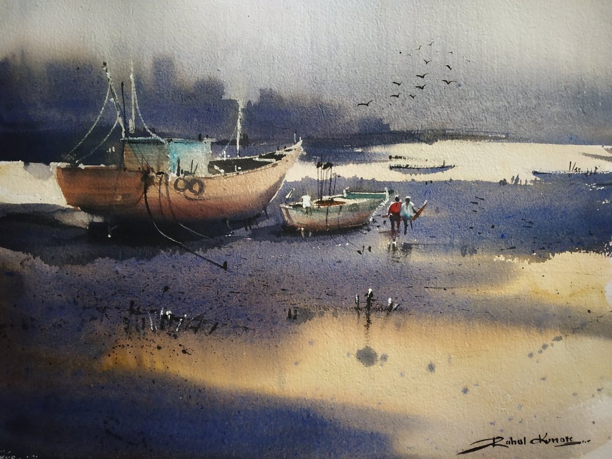 Watercolor work on paper #art #ArtistOnTwitter #arte #Watercolor #watercolorpainting #landscape #boats
