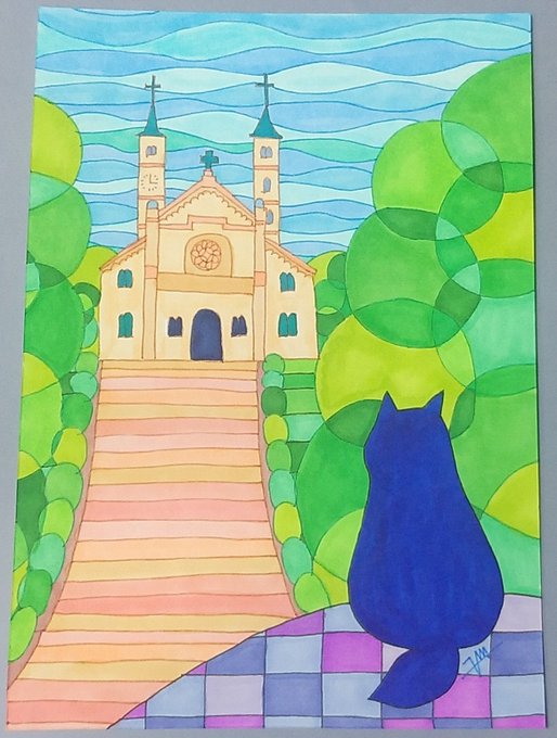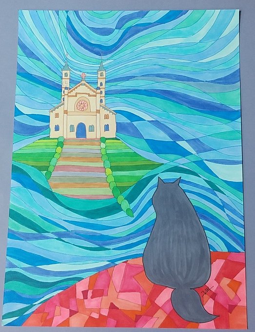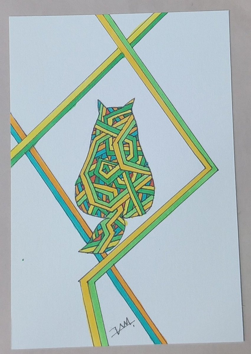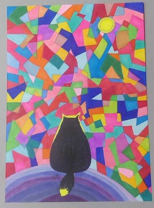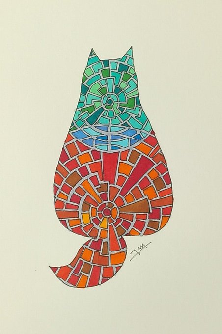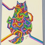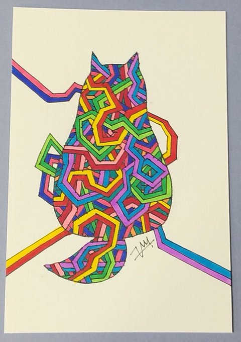 1 7 『 もつれたうしろ姿 1 』 (紙・コピック・196×135mm) ネコを“もつれ”で描いてみた。 色は可愛いけど、ちょっとキショいかも…… #artwork #コピック #abstractシリーズ 23/07/04 20:34