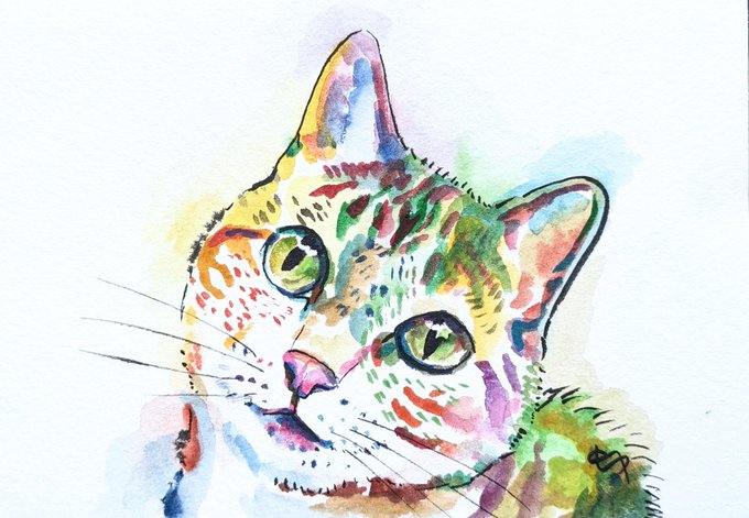 #わたしの世界へようこそ #猫好き #アナログ #水彩画 と #色鉛筆