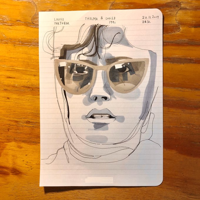 #Inktober2019 #Tintubre #DesdeLaPantallaGrande #ThelmaAndLouise 1991 | 28/31 en honor de la grandísima @_hipocampo_ , a tu salud guapa! > banda sonora: youtu.be/0KV-PTK0UZ4 .