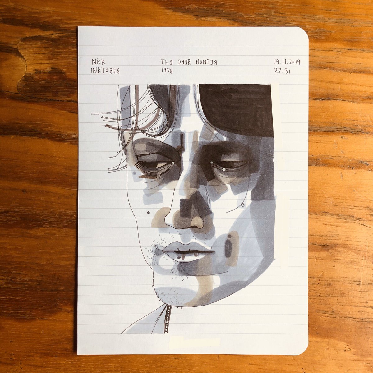 #Inktober2019 #Tintubre #DesdeLaPantallaGrande #TheDeerHunter 1978 | 27/31 en honor de la grandísima Marta, a tu salud guapa! > banda sonora: youtu.be/c6gpa8nUa70 .
