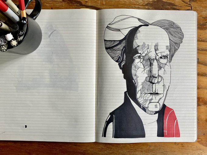 Día 1/31 Juan O’Gorman Había planeado hacer un #inktober2020 alrededor de series televisivas, pero vi el enfoque que va a adoptar @SantiagoSolisM que me parece más interesante, espero concluirlo. #ArtInOctober #Tintubre #Portrait #Retrato #Artista #Artist #Ink
