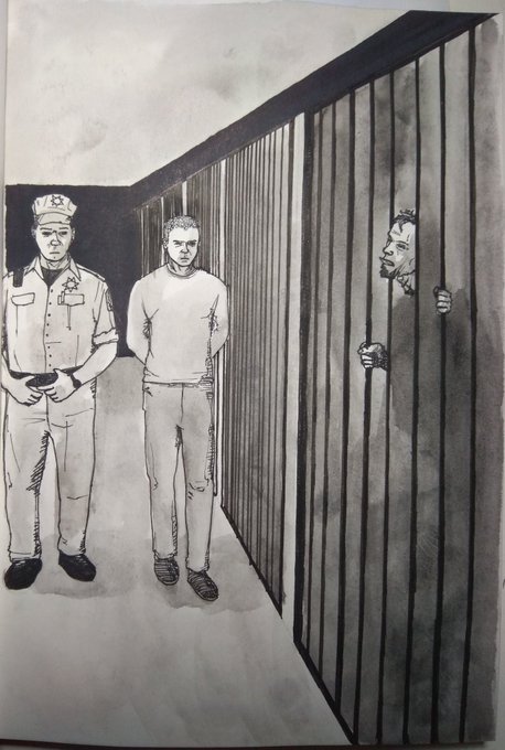 Day 4: Prison Break. (I know it's bad, but I didn't have much time today, at least I did it. Gotta post the bad things too.) (The shadows are watercolors but shhhhh.) #Inktober2019 #Inktober #inktoberday4 #Dtober #ink