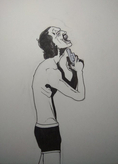 Day 5: Joker. (Not a TV show but who cares.) #Inktober #inktoberday5 #inktober2019day5 #INK #JokerFilm #Joker #JoaquinPhoenix #Dtober #artistasfuriosos