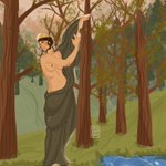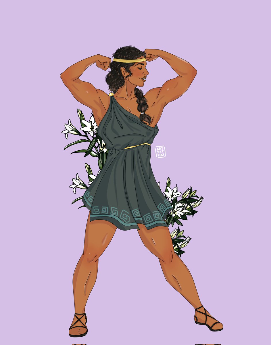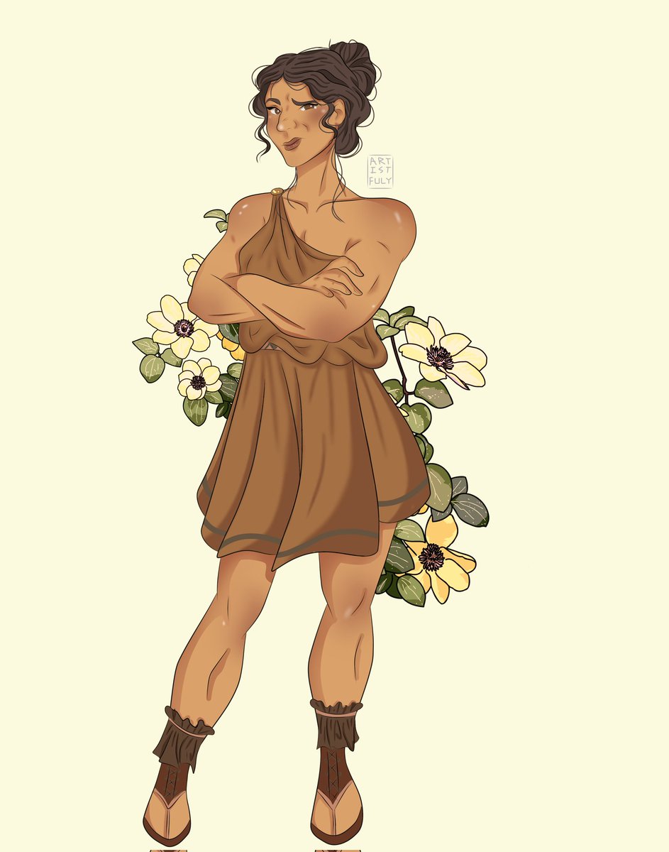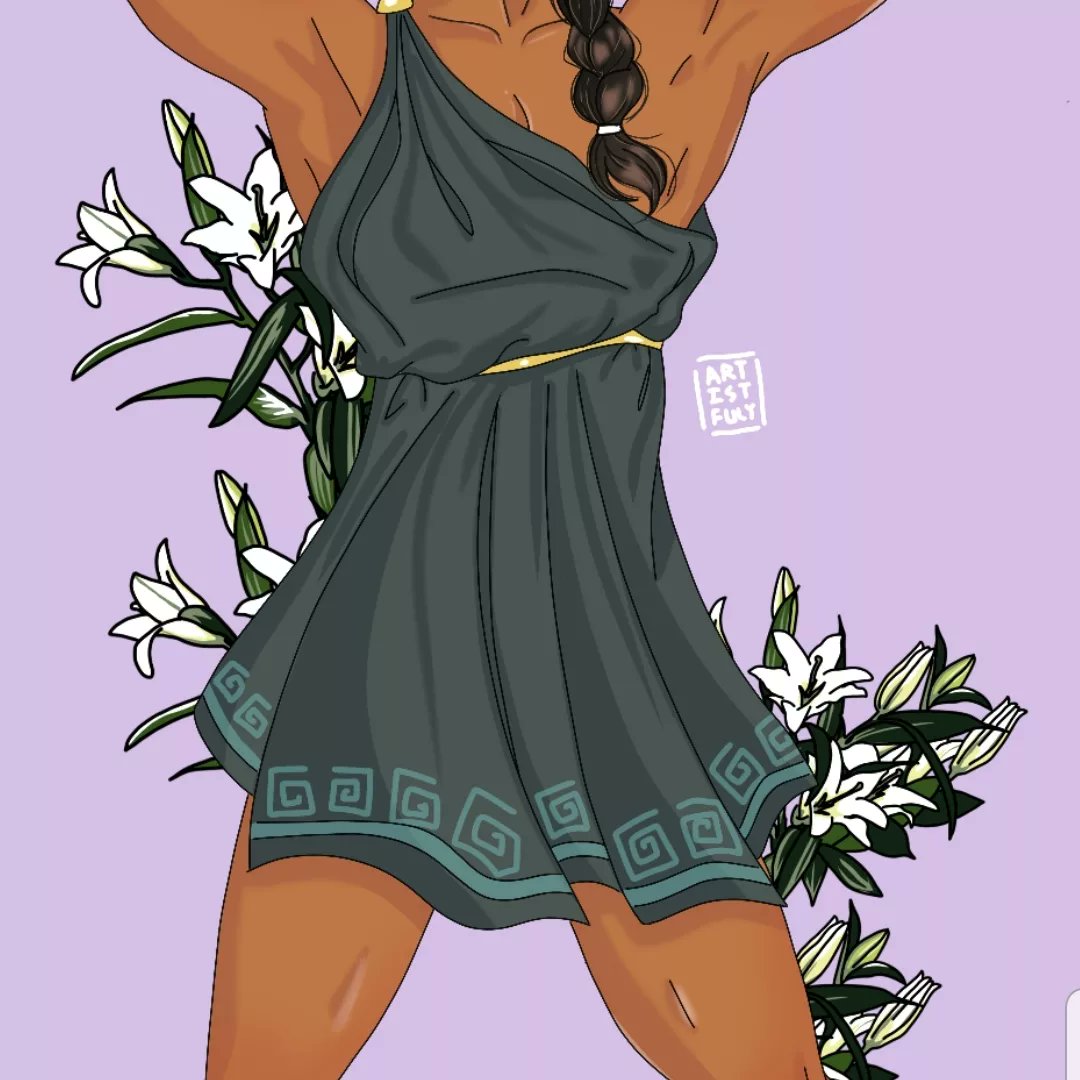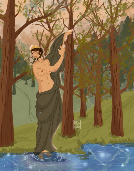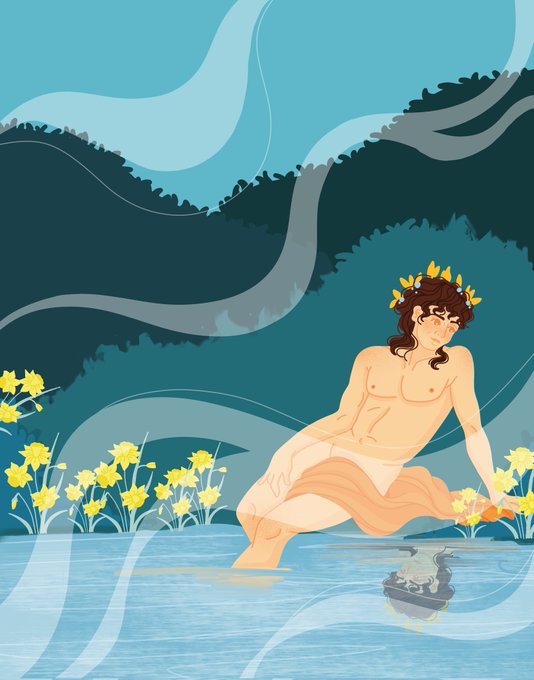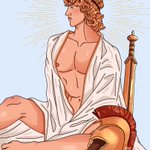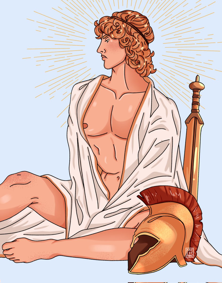 My illustration of Achilles with his armor off and helmet aside, refusing to fight. 🌱 (The blanket is a take on the red-figure pottery image of Achilles when he's wrapped in a blanket burrito)