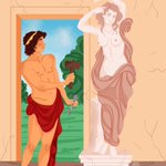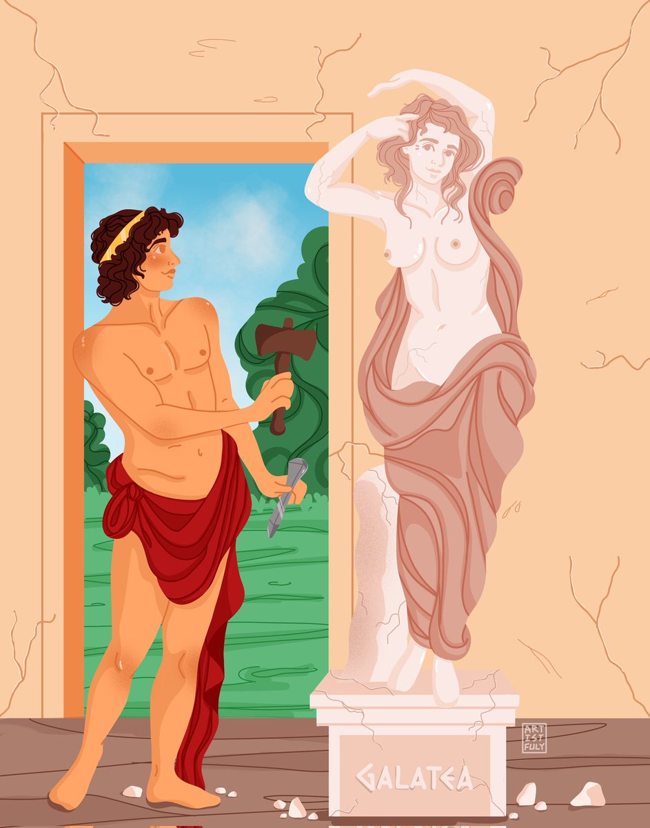 PYGMALION & GALATEA🌱 this drawing I made was inspired by the myth in Ovid's Metamorphoses. It's the story of a sculptor who made a statue representing his ideal of womanhood, then falls in love with his creation.