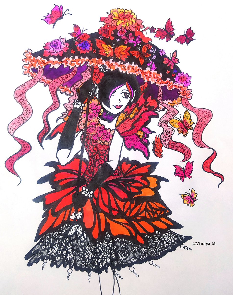 #InktoberOfTheDay: Little #ButterflyWitch. She shows more sass in her powers as much as she works on a dress. Very creative, artistic & smart when it comes to beauty, flying fashion & ❤️ nature. BTW this is my last #Inktober work. Happy #Halloween. #Inktober2020 #Art #Artist