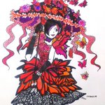 New pic of October. #Drawingpens & #watercolorinks on notebook paper #butterflygirl #redandorangeart #butterflyfairy #fairygirl #lacefabric #butterflies #inktober2022 #inktober #drawingpenart #inkartwork #inkart #digitaleffects #inkillustration #fantasyartpic #fantasyfashion