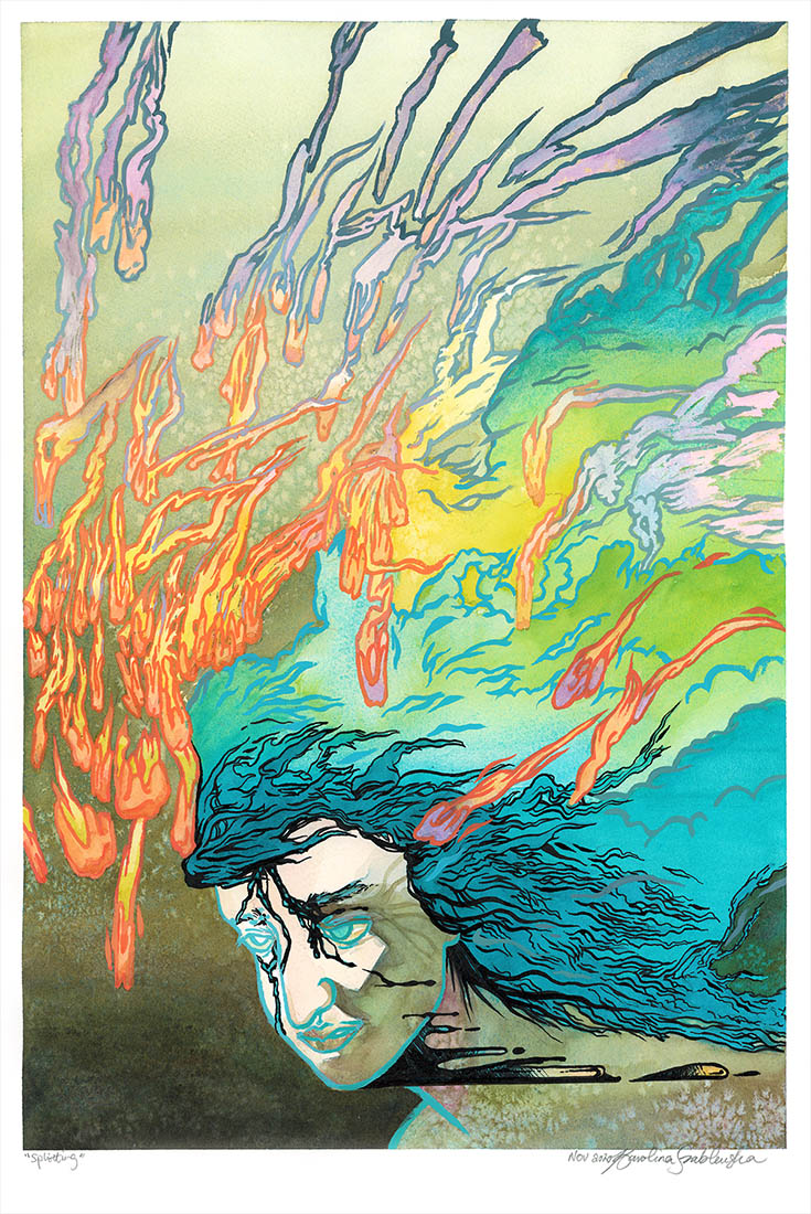 The Eclipse Ink, watercolor, acrylic. 17x17in Now available as a tattoo ticket, print & glow in the dark original artwork. The tattoo ticket is up on my Etsy. #surrealart #surrealism #fantasyart #dragons #darkart #psychedelic #meditation #artprints #wallart #painting #artwork