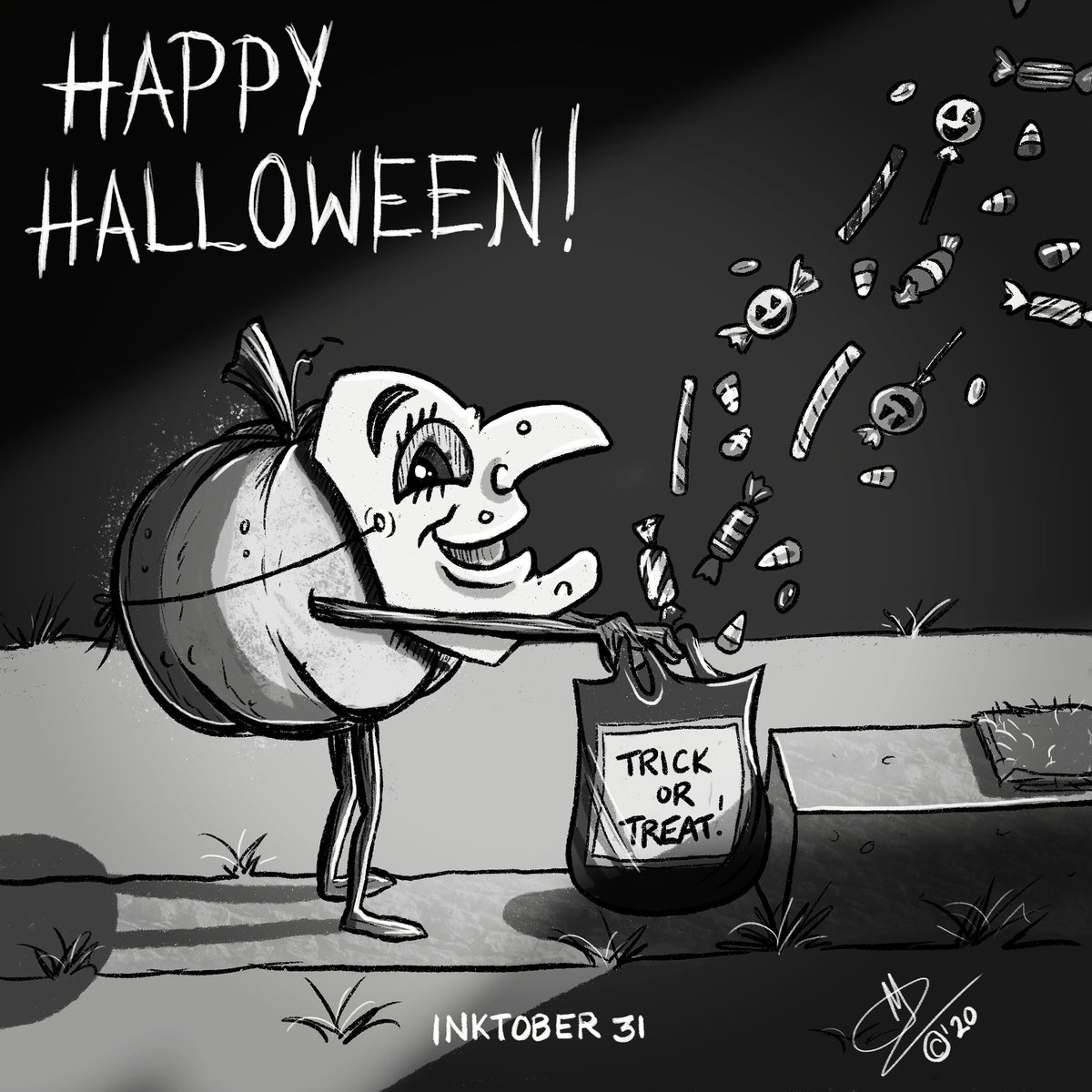 #Halloween2020 Thabks for sticking with me this #inktober2020! Be safe out there and have fun! #inktober2020day31 #kidlit #characterdesign #pumpkin #scbwi #scbwiillustrators #kidlitillustrator #childrensbookillustration