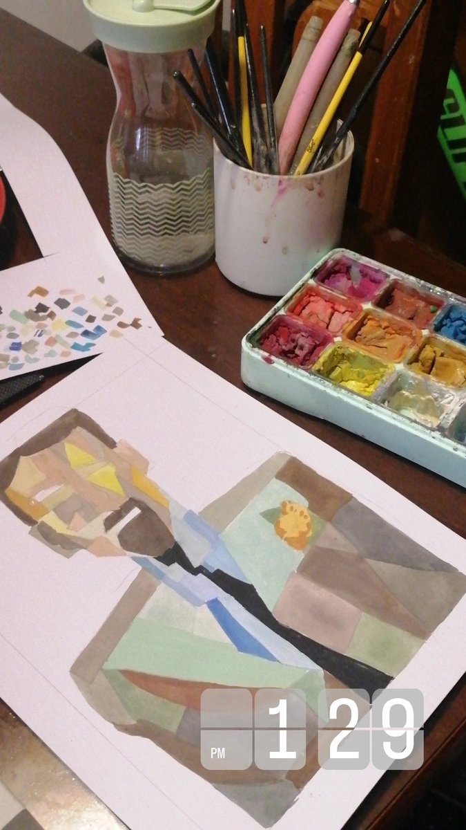 project for art class! :)) #artph #Pinterest #artistsontwitter #cubism #gouache #paint #Artchivist #art #artshare #drawingoftheday #drawingpractice