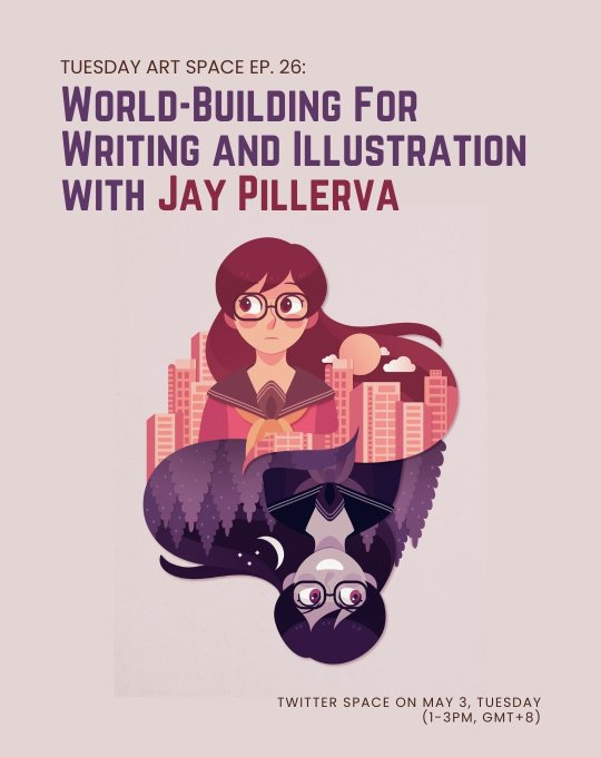 Don't miss the next #TuesdayArtSpace! My dear co-host, @jaaychaan, will be teaching us all about World Building for Writing and Illustration! ✨ Be there and learn how to create original content! twitter.com/i/spaces/1zqJV…