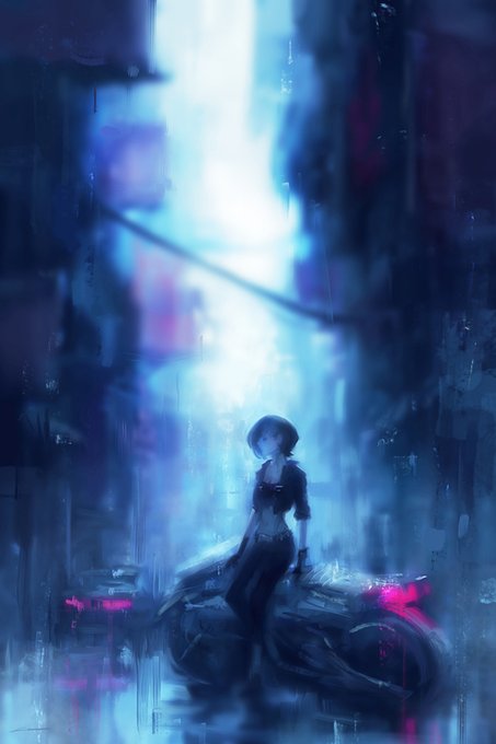 "Don't touch my bike. I'm warnin' ya." Bike (ORIGINAL) #art #conceptart #illustration #cyberpunk #anime #painting