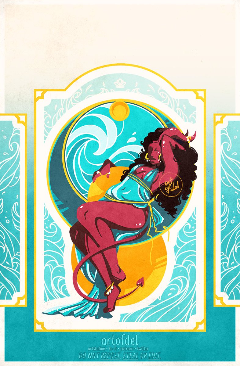 Art Nouveau inspired fake movie poster I did as a project for class last year. We were free to do whatever we wanted so I did a quick mock-up by using an older sketch & turning it into my very first #CriticalRoleFanArt ! #Tiefling #TTRPG #CriticalRole #RubyOfTheSea @CriticalRole