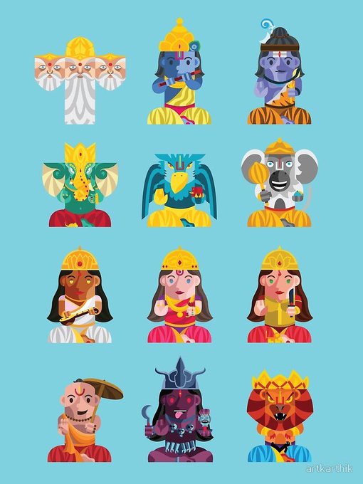Hello #PortfolioDay! I like drawing characters from cultures and mythologies around the world! #illustrations #artistsontwitter @redbubble #conceptart #mythology #godsofegypt #norsegods #indian #Thor