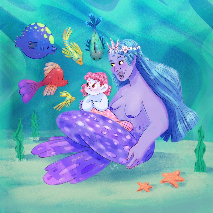 Introductions can be scary for a shy lil mergirl. Luckily mum is there to help 🐠🌟 My one and only contribution to #mermay this year 🌟 #mermay2021