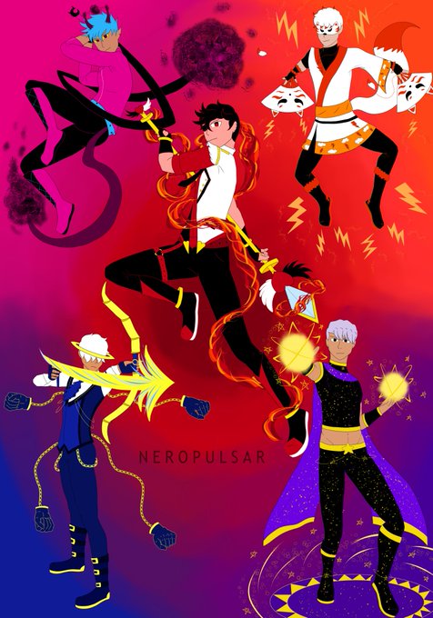 Forever Ad Astra Precure! 🌟 Solar 🧡☀️ Lunar 💜🌙 Nebula ✨🌈 Meteor 🌠💙 #ArtistOnTwitter #precure #fancure