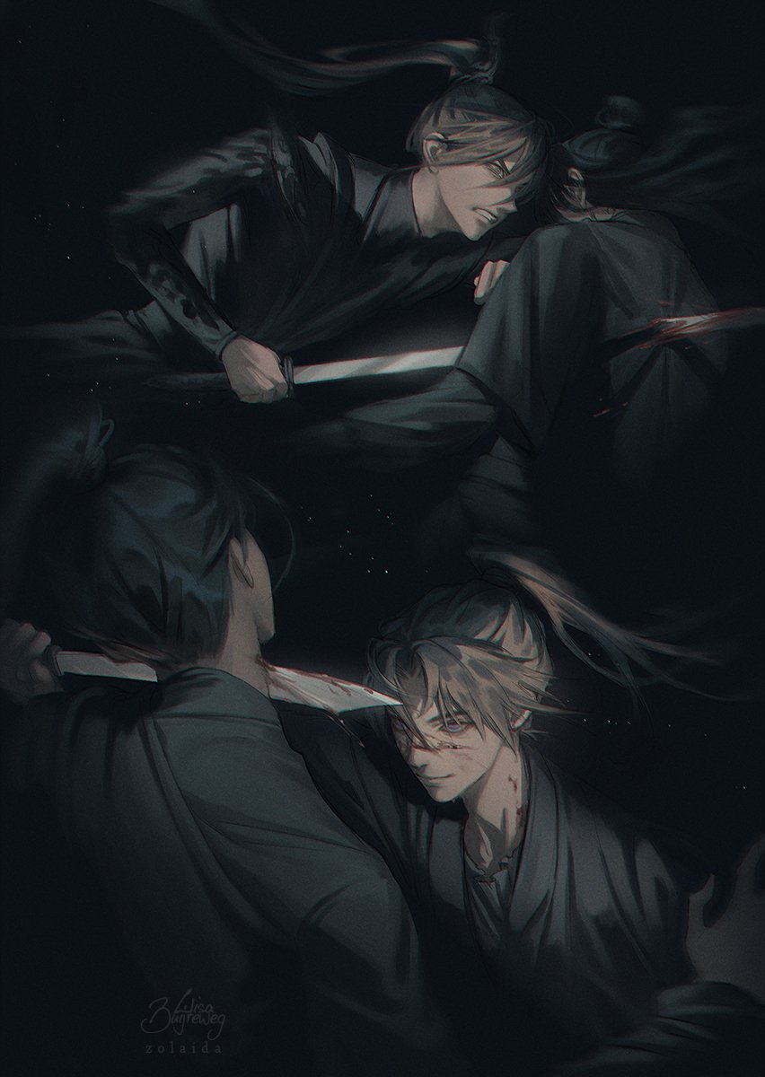 Perhaps it was only in this moment that Xue Meng truly understood the feeling that Mo Ran had felt when he was young. Anger had burned his heart, and only blood could extinguish it. cw // blood #2ha #二哈和他的白猫师尊
