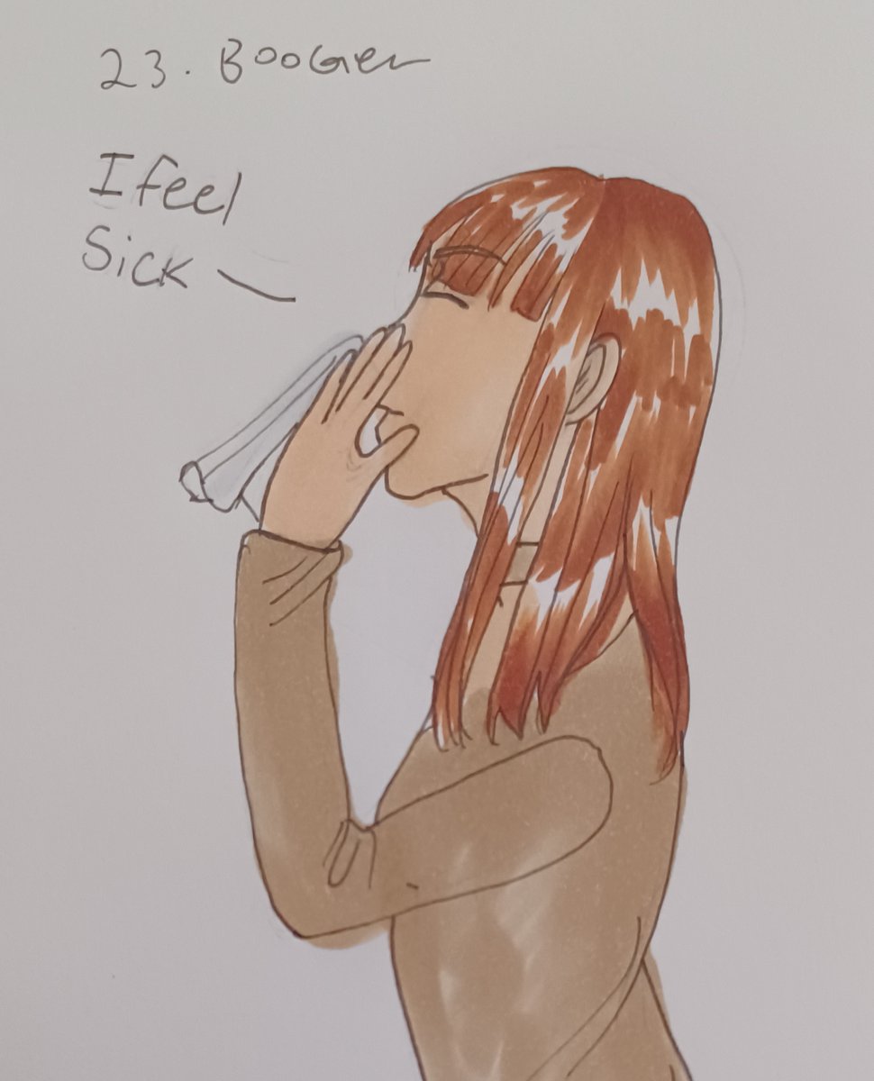 Inktober Day 23: Booger. No way was I going to draw an actual booger, so here is someone sick. #Inktober #inktober2022day23 #inktober2022 #art #artist #artistsontwitter