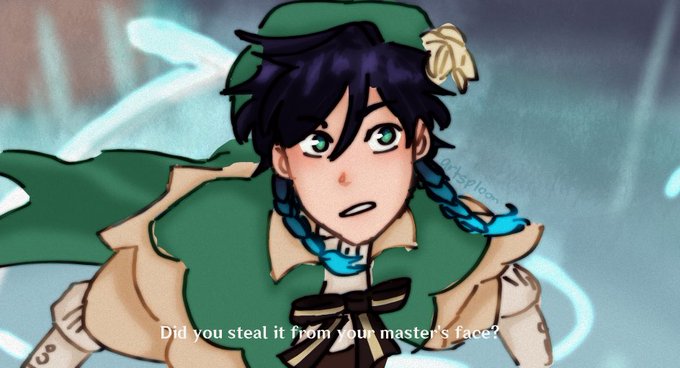 i have art block so i redrew a genshin cutscene heheh i found the font and everything - - - #Genshin_Impact #ventifanart #genshinimpactfanart