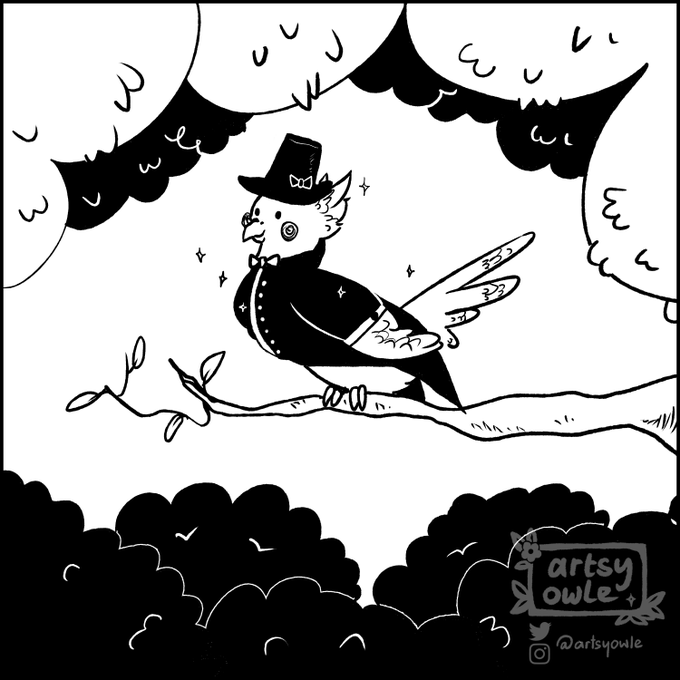 inktober day 7: fancy i just. dont know with this one #inktober #inktober2020 #inktober2020day7 #inktoberfancy #fancy #cockatiel #bigboss #mgs