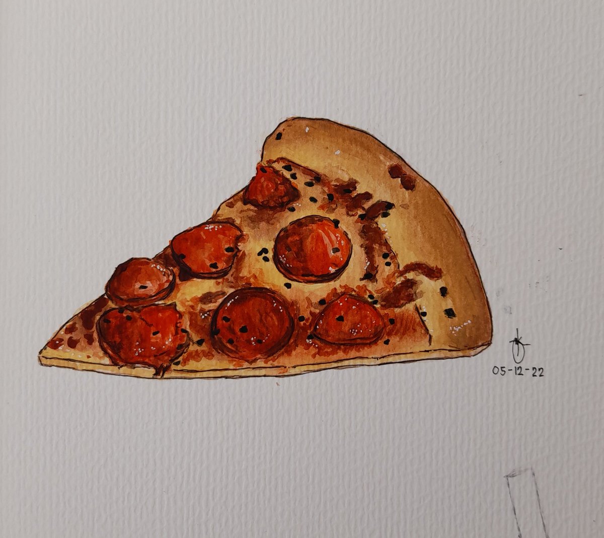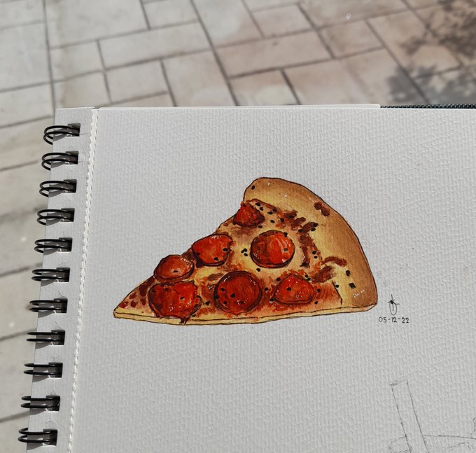 Pizza time!! 💖✨ Interact wt me! How are u doing? Haven't posted in a while due to many reasons. 🥺🥹 #artph #artistsontwitter #Watercolor #foodillustration