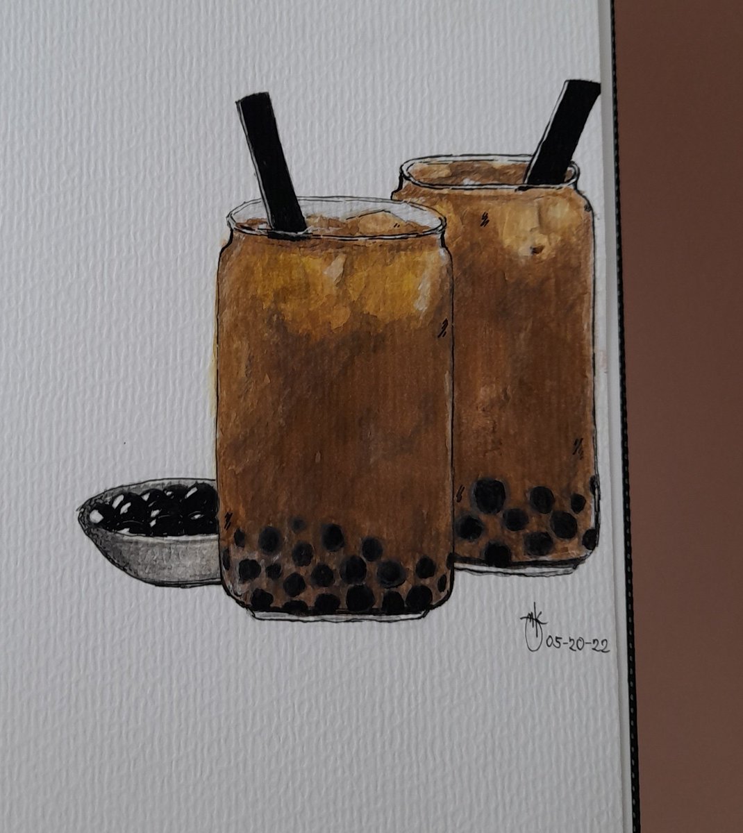 iced boba coffee 🧋✨ this one was actually requested by a close friend hihi <3 Btw, thanks for the 400+ follows. luv y'all 🥹😤✨ #artph #ArtistOnTwitter #Watercolor #food