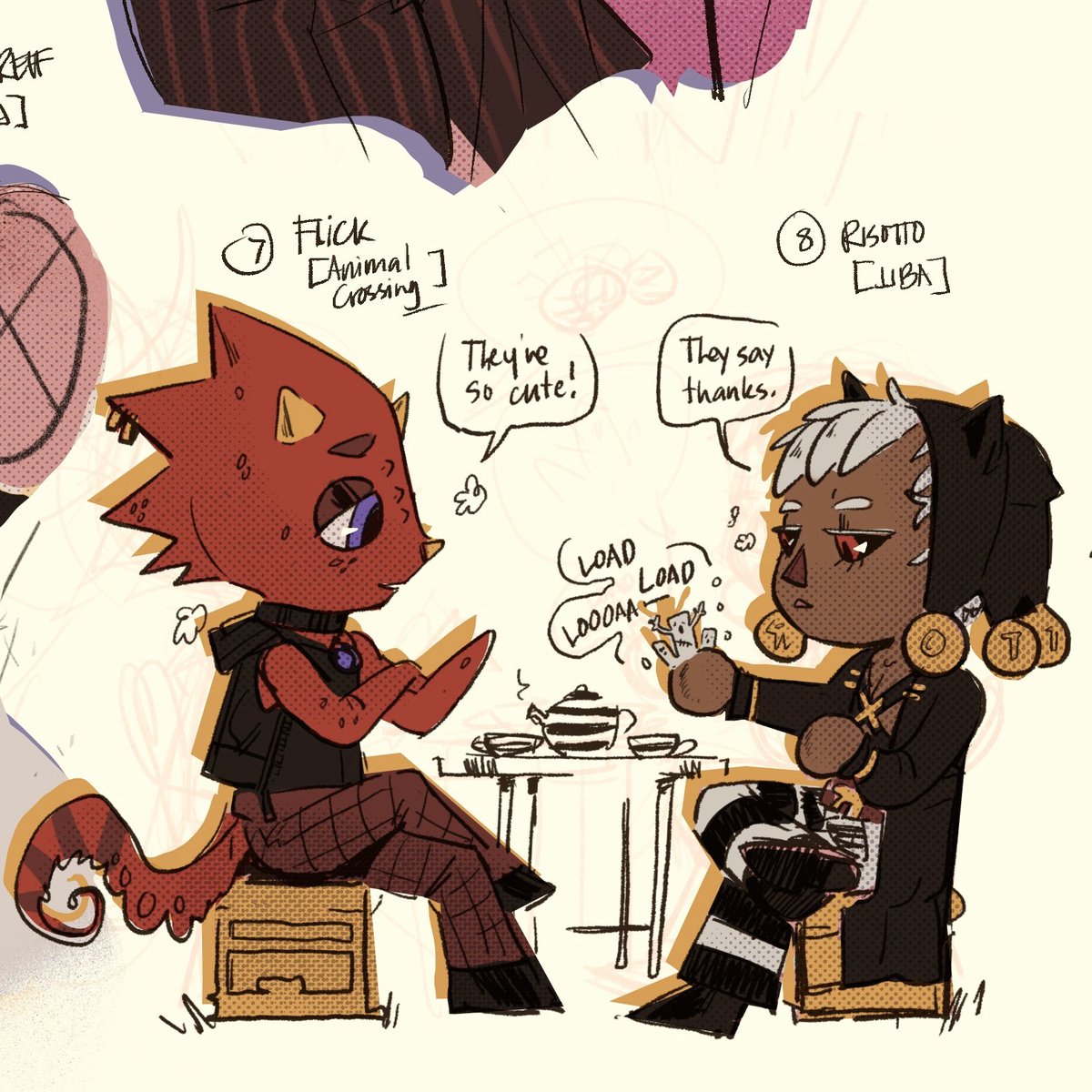 #SixFanarts but like, make that eight LMAOO 😌😊 thank u to everyone who sent thru a request this was rly fun hehe #hxh #gangsta #dorohedoro #jjba #fc4 #AnimalCrossing