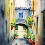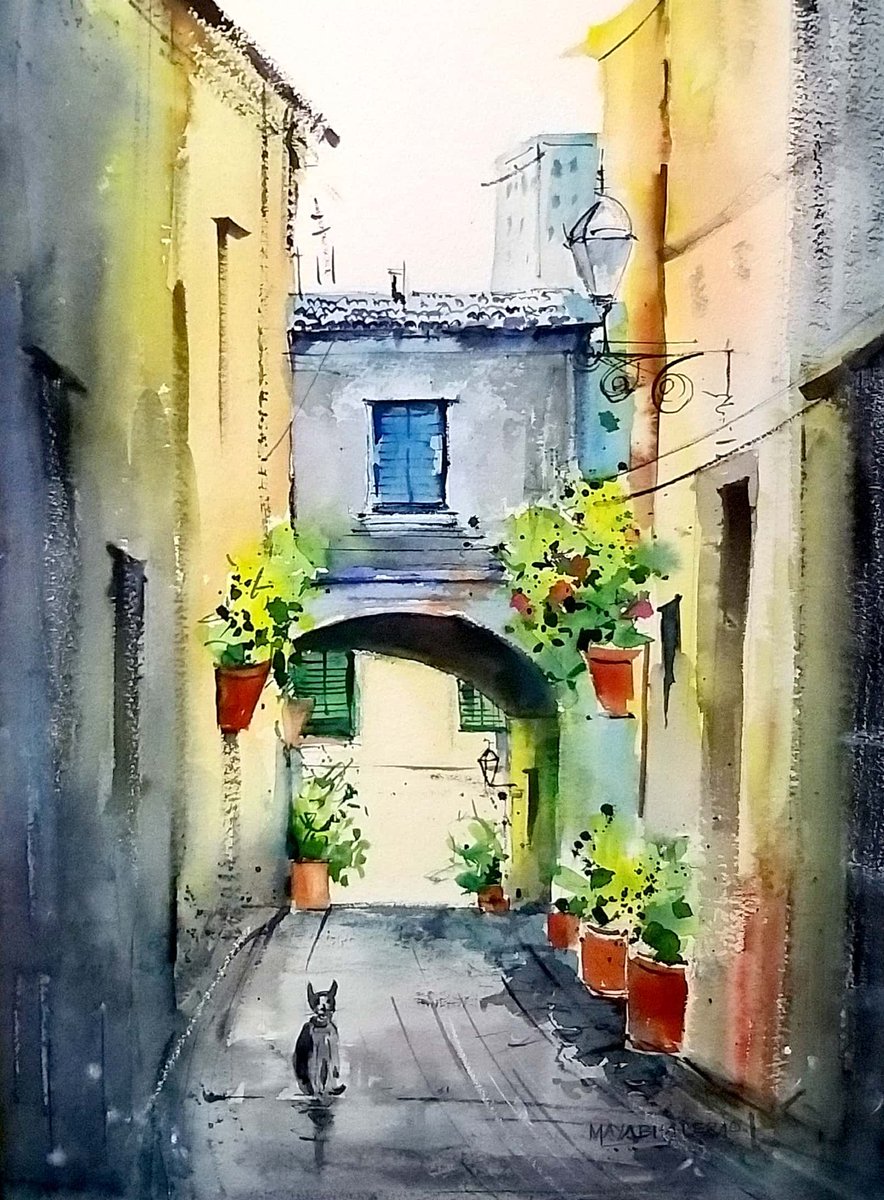 An attempt to recreate a charming #alley, the backstreets of #France! #French #paintings #art #artvsartist2021 #architecture #quote #Watercolor