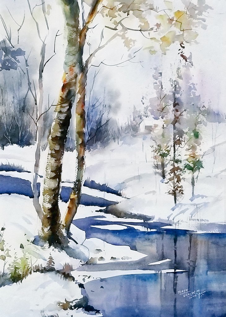 Finding my way through #WINTER!! #snow #forests #Watercolor #artvsartist2021 #art #artwork #River #painting #DecemberVibes #Trending