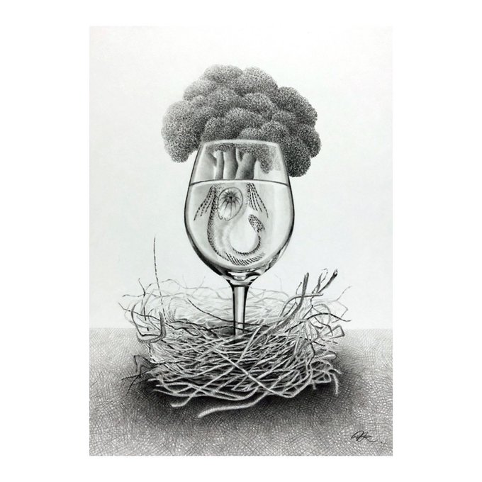 『黄金の一角』 (Golden horn) 色鉛筆画 2017年/KMKケント紙 15.0×10.0cm 色鉛筆・鉛筆・ボールペン 個人蔵 角度を変えると輝く絵画 #色鉛筆画 twitter.com/i/web/status/1…