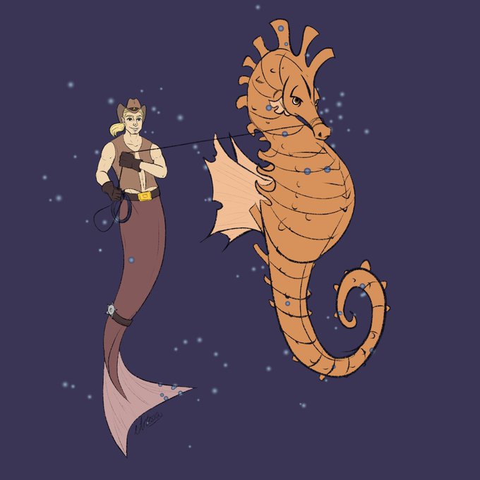 🐚MERMAY 2021🧜♂️ [Day 15: Lassoed] "I wanna be a cowboy, baby!" (To everyone who gets the meme, here's a cookie🍪) #mermay #mermay2021 #ArtistOnTwitter #art #Cowboy