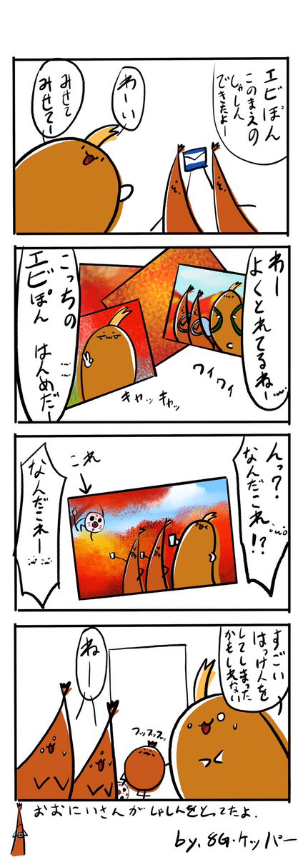 1 4 エビぽんとそーせーじ りょこうのしゃしん #4コマ漫画 #漫画が読めるハッシュタグ 21/12/04 18:07