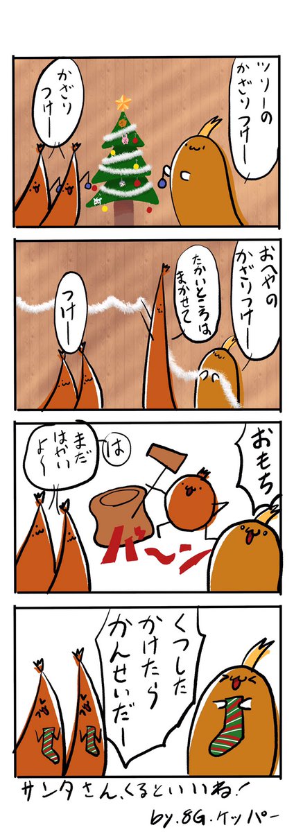 3 4 エビぽんとそーせーじ サンタさん #クリスマス #ハッピーホリデー #4コマ漫画 #漫画が読めるハッシュタグ 21/12/25 16:34