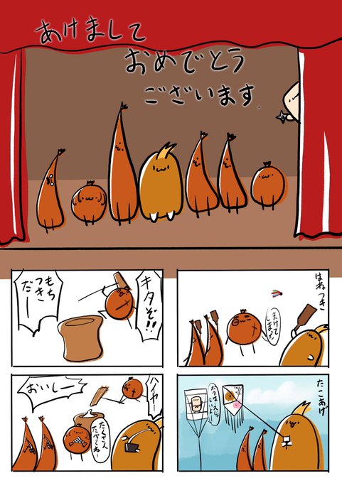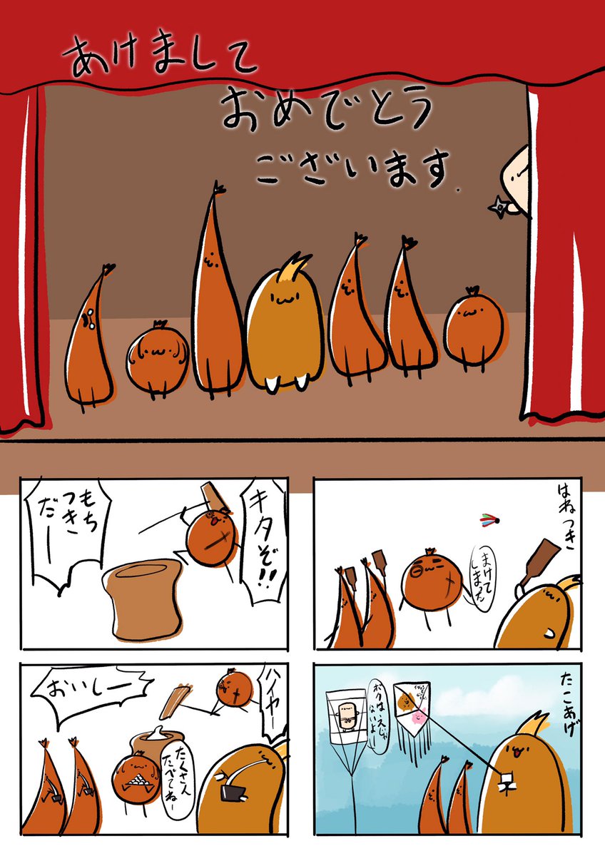 2 3 エビぽんとそーせーじ しんねん #4コマ漫画 #漫画が読めるハッシュタグ #NewYear2022 22/01/01 11:21