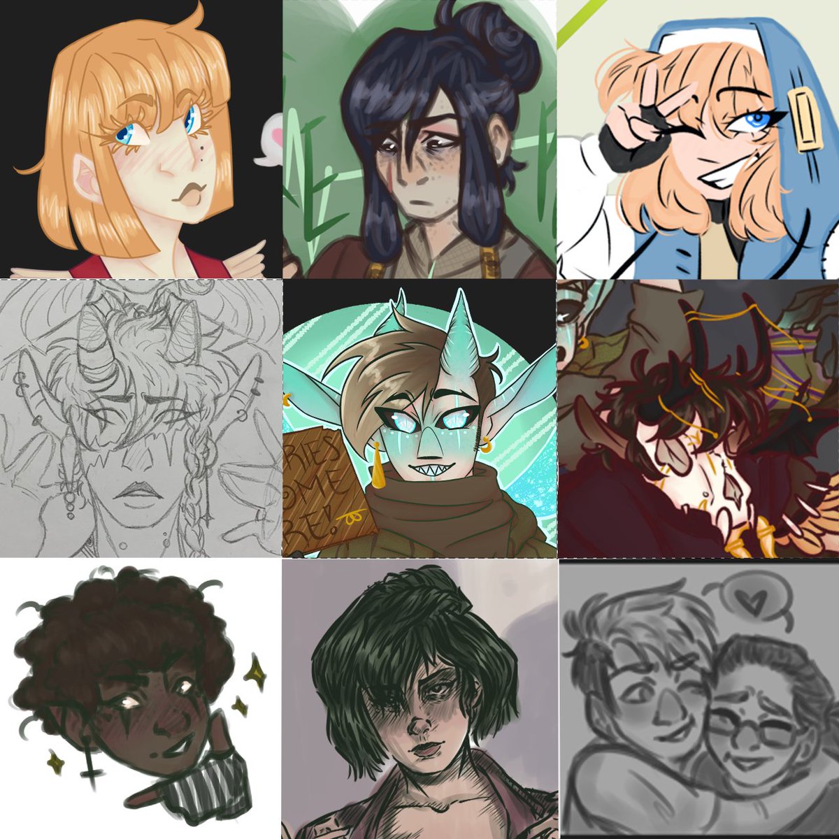 hopping onto the bandwagon with this one~ top left darlin belongs to @/iboon_png, right mid is the lovely @/lykusArt, bottom left is the wonderful @/the_souptown. check those folks out. #faceyourart