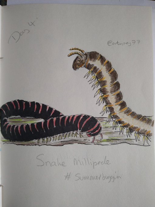 July 4th #SummerBuggin is a snake Millipede 😃🦋🦂🪱🐌😸🪰🕷️🦗🐞🐝🪲🐜🦟🪳🐛 @ksneathart @caseybella3 #nature #wildlife #watercolor #ink
