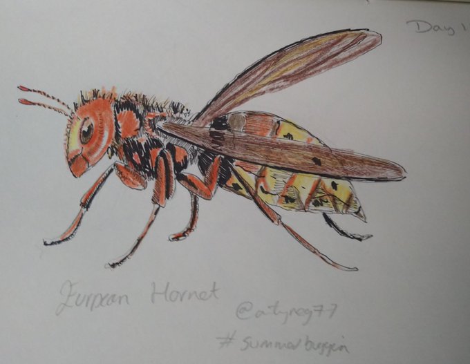 July 10th #SummerBuggin we have a European hornet @ksneathart @caseybella3 #wildlife #nature #summer uhmmm 🤔 just noticed the wings look a bit wonky 🤣🤣 🐌🪱🦂🪳🪲🐞🐝🦟🪰🕷️🐜🦗🦋😁😀 #ArtistOnTwitter #art #artchallenge