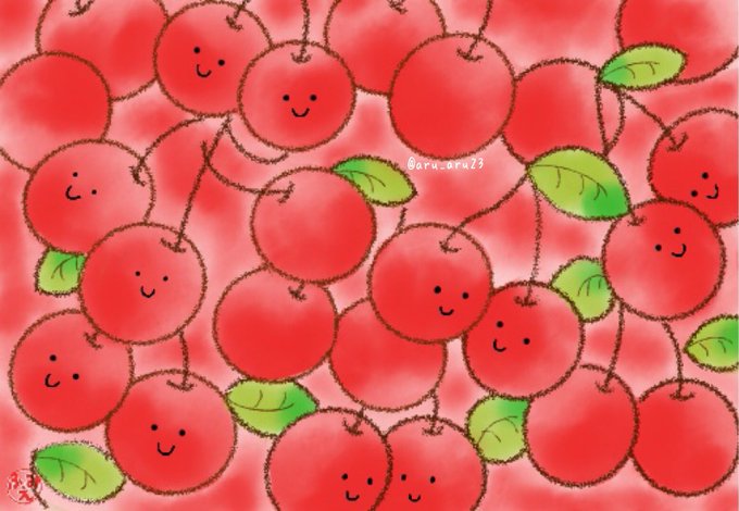 23 522 さくらんぼ🍒 #フルーツ #イラスト 20/09/07 11:09