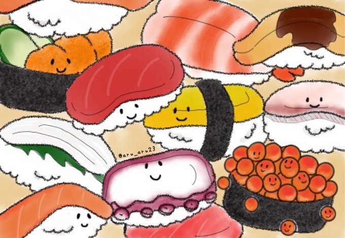 20 595 おすし🍣 #イラスト #お寿司 21/03/11 19:54