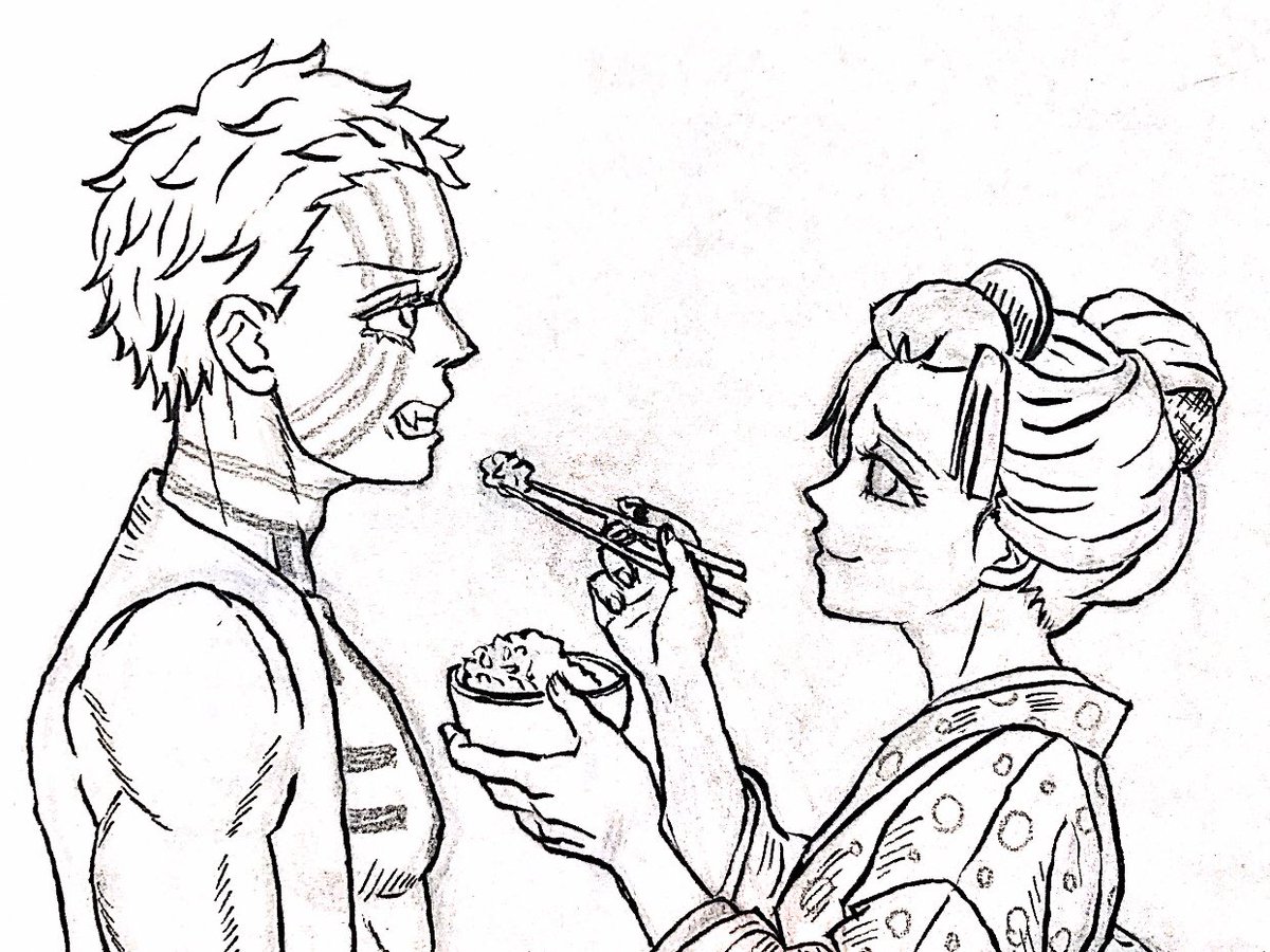 14 108 #鬼さん深夜の60分一本勝負 @oni1draw1write お題:猗窩座/食事 ←1時間/+3時間20分→ 20/04/17 22:27
