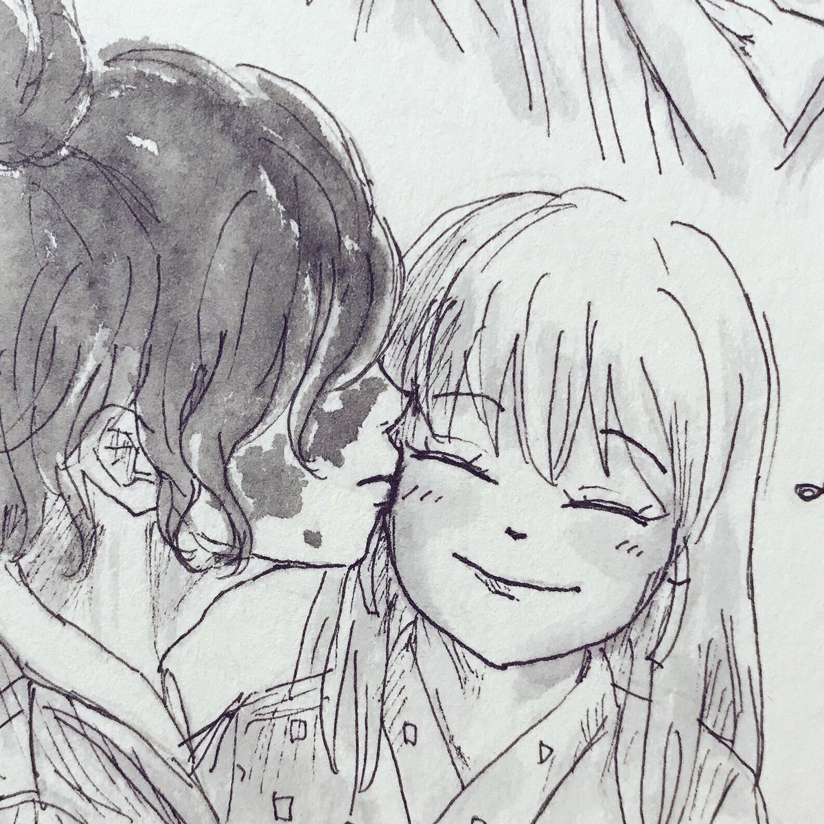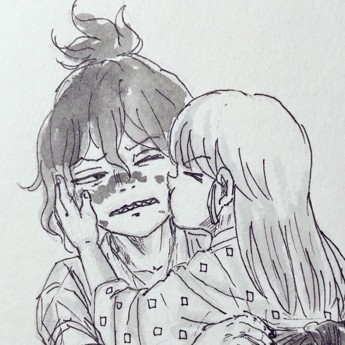 40 229 新作なにも描けてないから過去絵再掲します🙇🏻♀️🙇🏻♀️ 強引にちゅうする梅ちゃん。根負けして応えるぎゅうたろうくん。 21/10/20 21:24