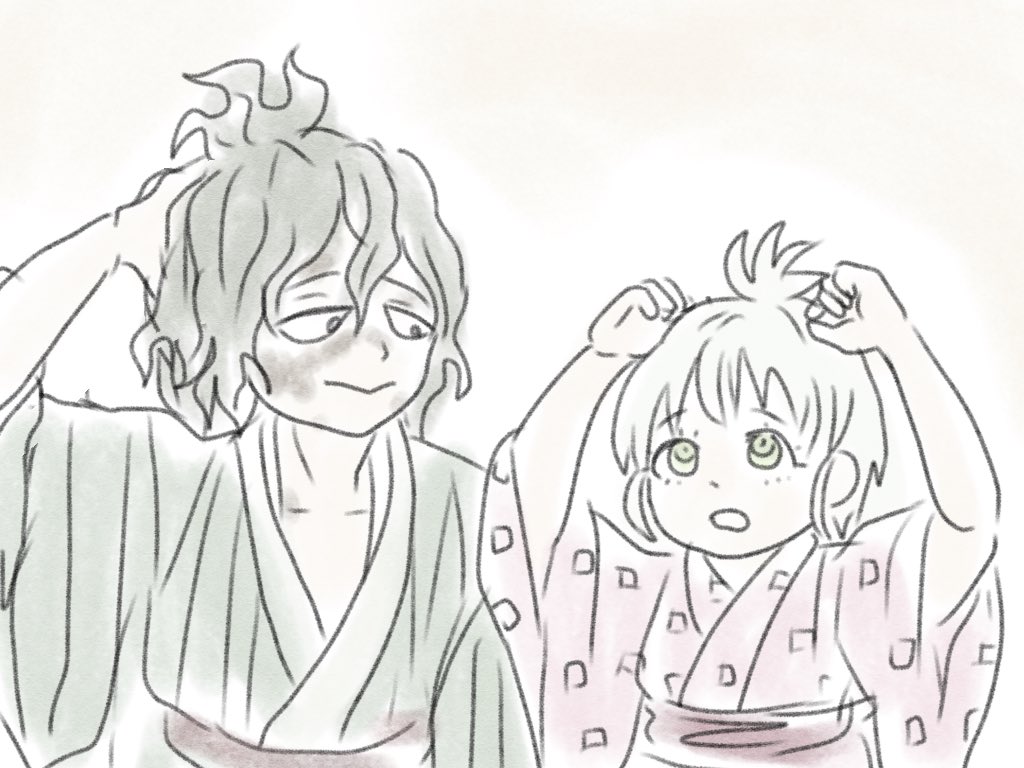 99 496 #鬼さん深夜の60分一本勝負 @oni1draw1write 遅刻参加失礼します! お題:妓夫太郎、堕姫/金魚 5時間15分オーバー 20/08/29 19:49